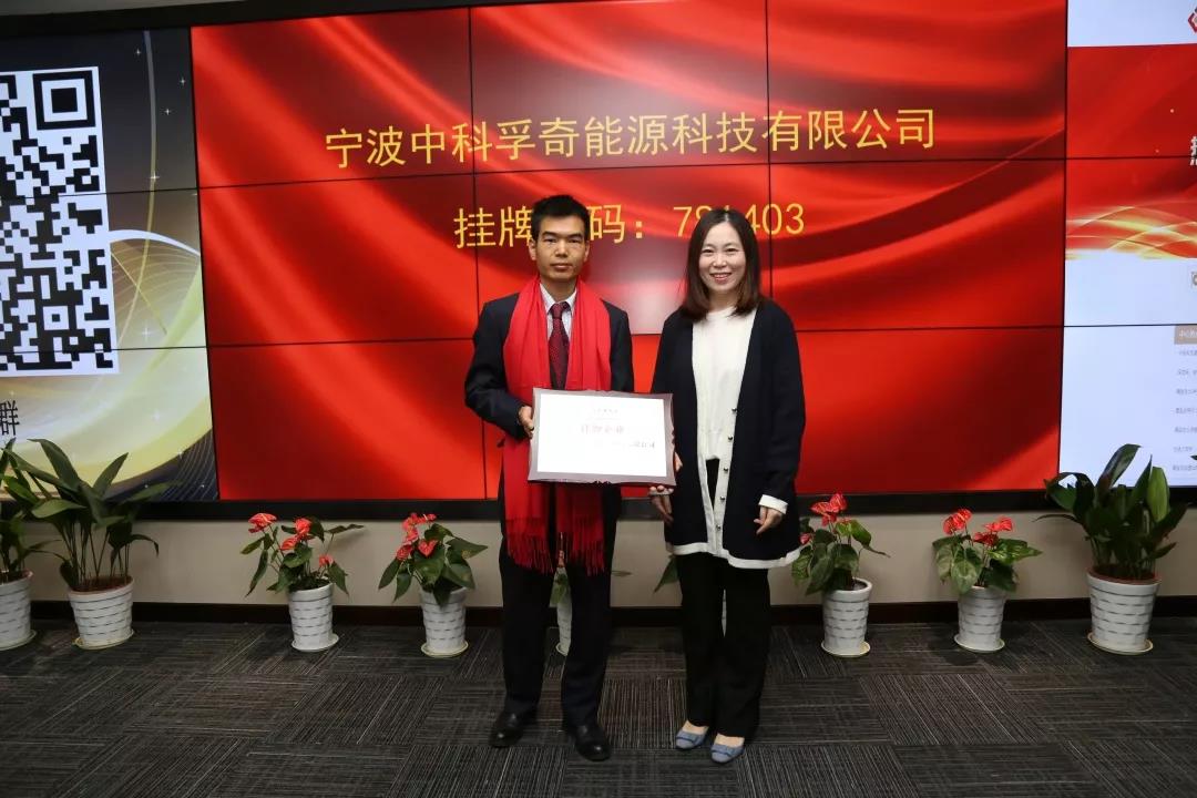 10月24日下午,寧波中科孚奇能源科技有限公司在寧波股權(quán)交易中心正式掛牌(掛牌代碼:781403)。左飛龍先生代表中科孚奇參加寧波股權(quán)交易中心掛牌儀式。 中科孚奇致力于電力儲